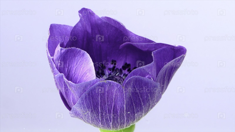 Красивый цвет лиловой анемоны цветет изолированно на белом фоне. Резервные кадры. Закройте расцветающий бутон анемоне