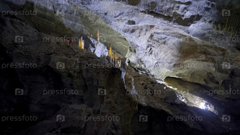 Внутри освещенной пещеры. Продолжайте. Удивительная природа каменных пещер внутри гор. Экскурсии в пещерные музеи. Естественные каменные столбы в пещере