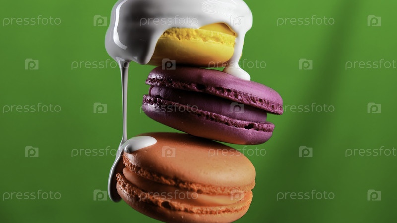 Покрыть белую глазурь, сливающую три макароны на красочном фоне стены