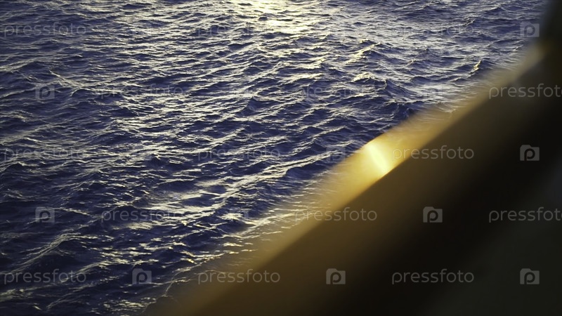 Дековые перила Вид на круизный корабль.Сток.Вид на морские волны с корабля