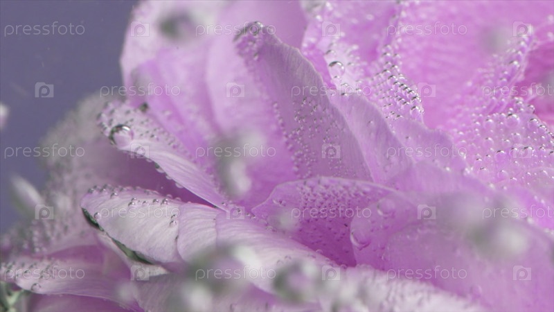 Листья роз в кипящей воде на фоне фиолетовых стен. резервные кадры. Закройте цветущую часть открытого бутона