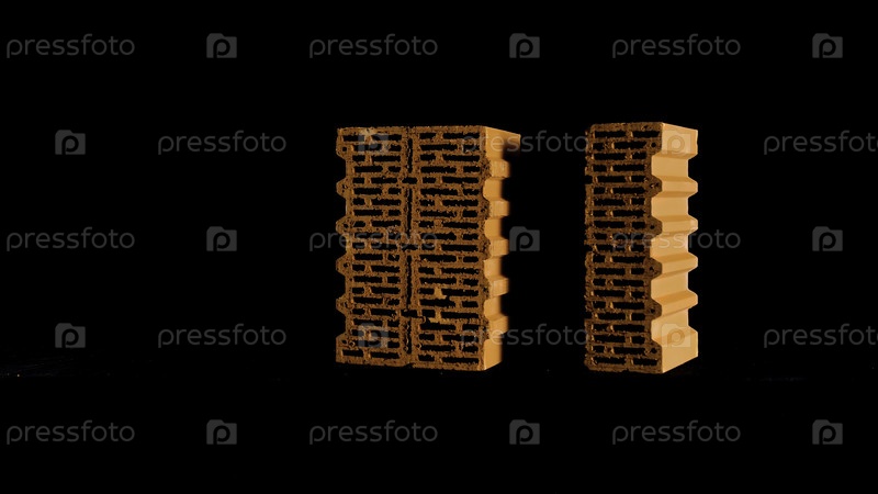 Закройте два красных кирпича на черном фоне.Концепция строительных материалов