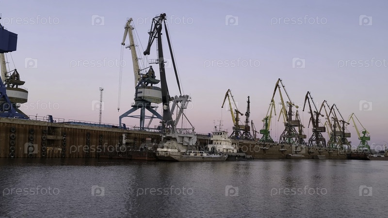 Крупные промышленные машины и спокойная поверхность воды, концепция грузовой перевозки