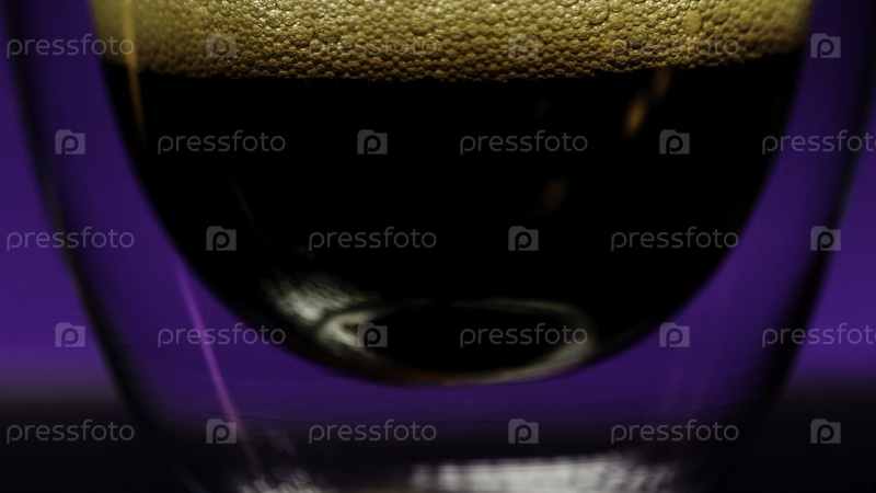 Содовые пузырьки в стакане на фоне темной стены меняют цвет. акции клип. безалкогольные напитки в прозрачном стекле с двойным дном