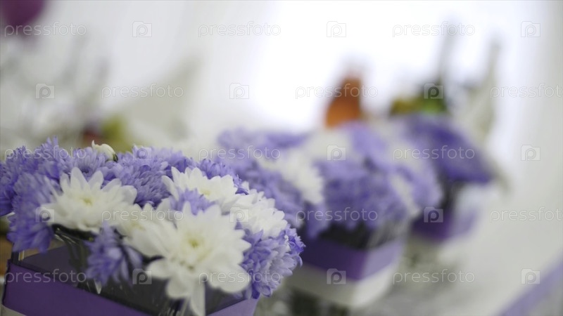 Цветы в стеклянных горшках, селективный фокус