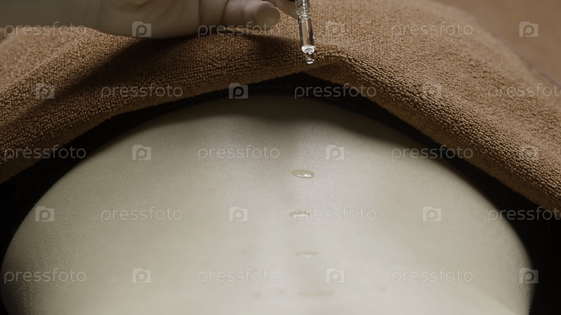 Оливковое масло, которое качается по телу в полотенцах и обтирают для качественного массажа