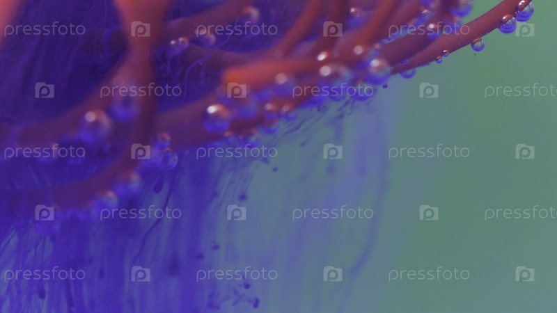 Яркий цветок в абстракции. резервные кадры. яркий фон, где цветок спускается в воду и она открывается и пузырьки окутывают ее