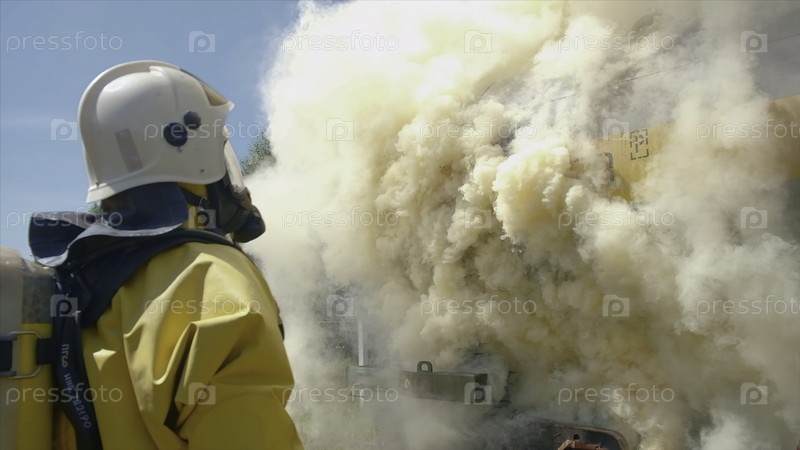 Пожарные среди сильного дыма.Клип.Пожарные курят поезд.Промышленный пожар на автомобиле летом.Огонь и опасность