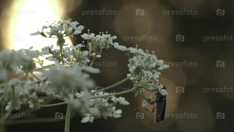 Насекомое на красивом цветке.Креативность.Волшебник питается пыльцей цветов в солнечный летний день.Прекрасная волынка на ярком цвете.Макрокосм летнего луга