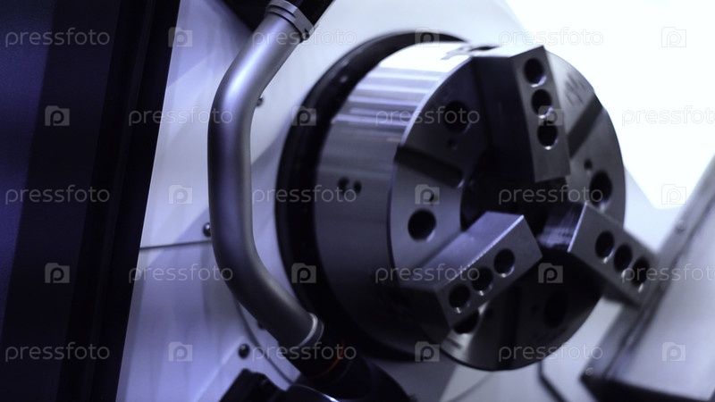Закрытие быстро вращающейся металлической части. Движение. Ротация части промышленной машины в мастерской