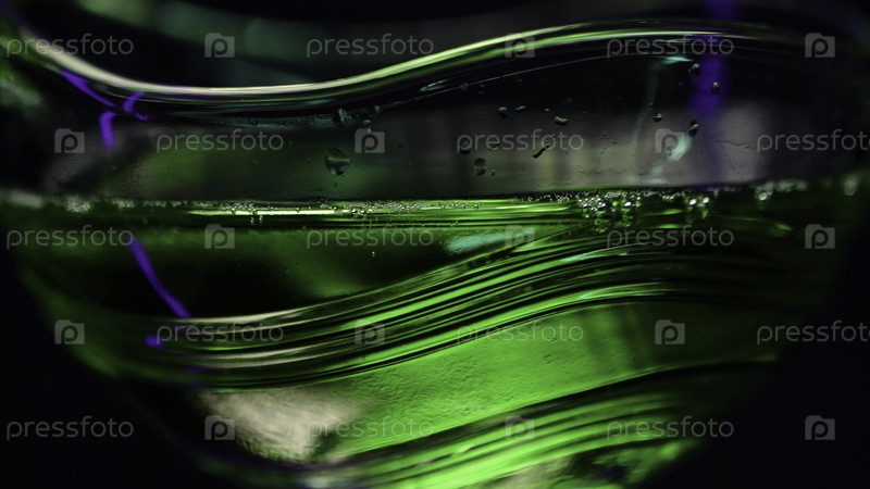 Бармен.Стокклип.Ярко-зеленые горящие напитки в большом стакане, которые наливают для питья.Высококачественная запись 4k