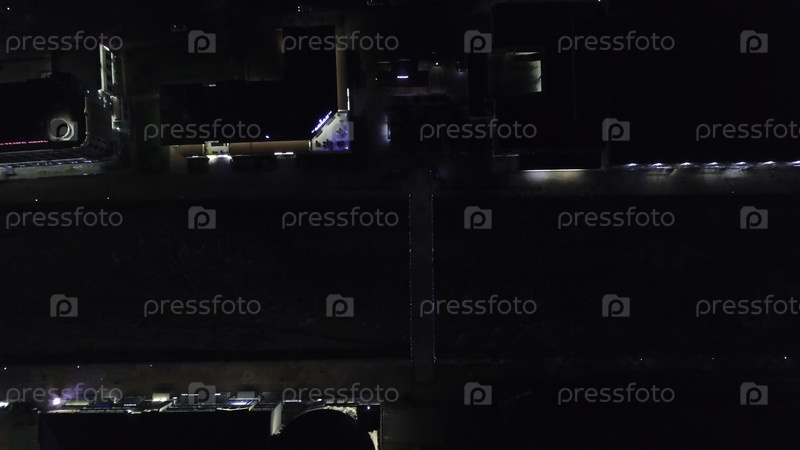 Слабый свет из домов освещает ночные улицы города и небольшой канал с рекой