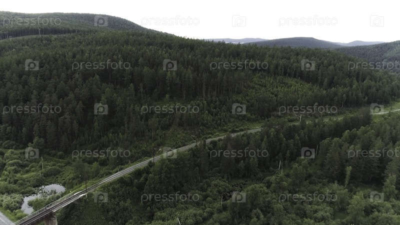 Вид на красивый зеленый пейзаж с грузовиком, едущим по шоссе. Сцена. Панорама зелёных деревьев со сельской дорогой летом. Летний ландшафт с дорогой и ощущение путешествия на машине