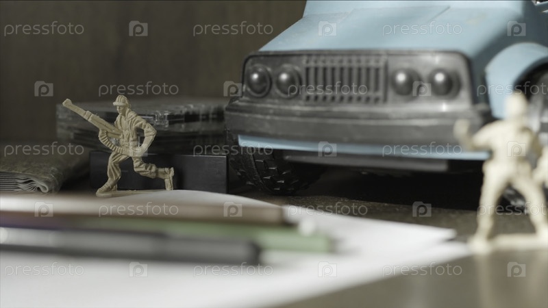 Зелёные пластиковые солдатские фигуры тают. Солдаты-игрушки в ряд. Вооруженные силы США - Символические солдаты-игрушки - макропоставка