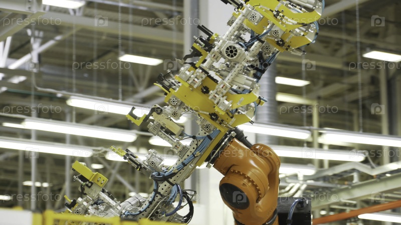 Новые технологии и машины в производстве. Сцена. Роботизированное оборудование при производстве автозапчастей. Последние технологии производства запасных частей и машин