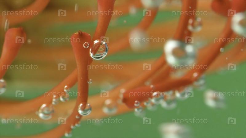 Покрывайте подводный цветок лейкоспермы крошечными пузырями воздуха. резервные кадры. необычно красивый цветок