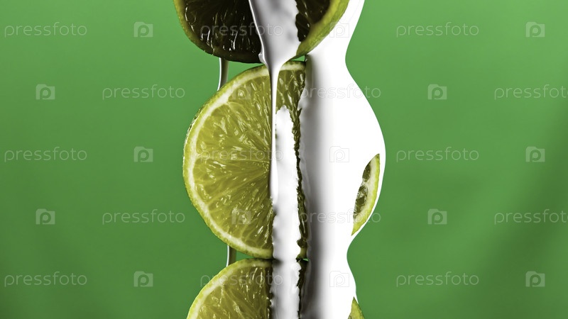 Плоды лайма покрыты токсичной белой жидкой краской, подчеркнутой на фоне зеленого хрома