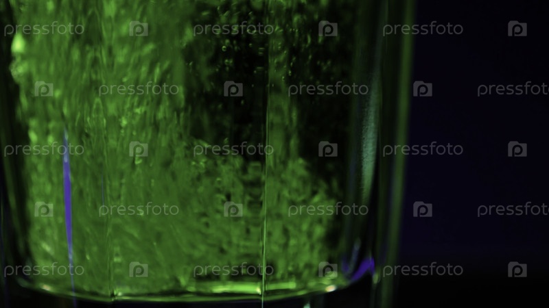 Освежающий газированный напиток в прозрачном стекле, изолированном на фоне красочного стенового фона
