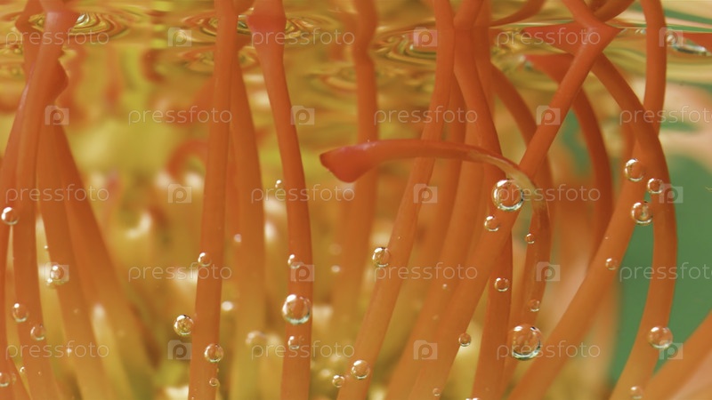 Закройте необычный ярко-оранжевый цветочный бутон в чистой спокойной воде. резервные кадры. Concept of Floristic Art