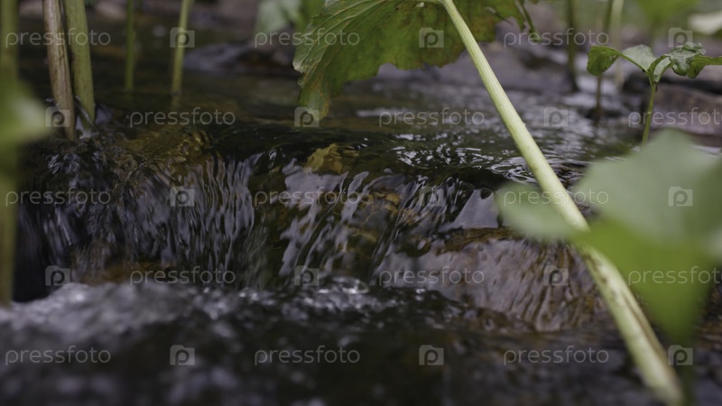 Вода брызнула в реку.Вода в реке покрыта пузырями.Водные пузыри плавают на поверхности реки с близкого расстояния