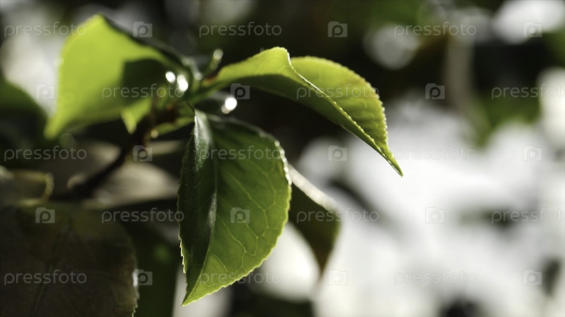 Закрывающие зеленые листья деревьев под солнечным светом. Красивые свежие сочные зелёные листья, освещенные солнечными лучами. Красота природы и жизни в зеленых листах растений