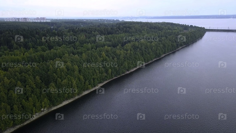 Огромный кусок моря с беспилотника.Клип.Огромное черное море, где можно увидеть побережье и лес, транспортный мост и спокойные облака