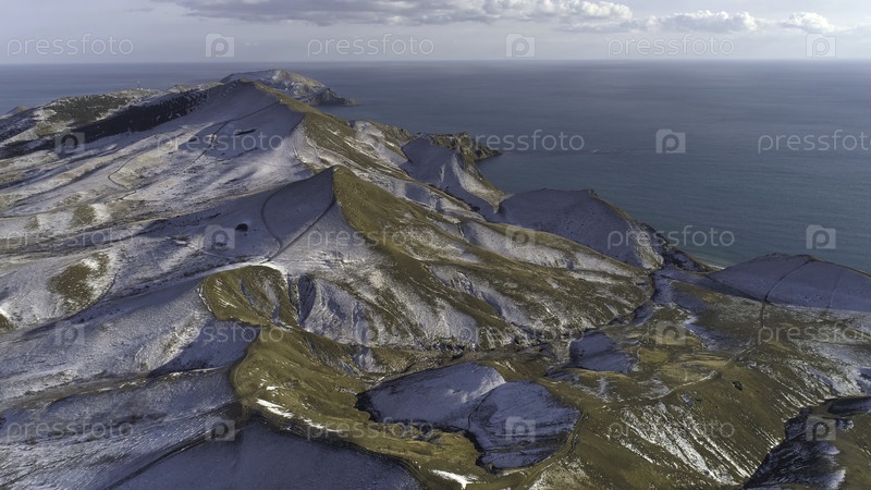 Зимний пейзаж с холмами, покрытыми снегом.Стрельба.Заснеженные холмы