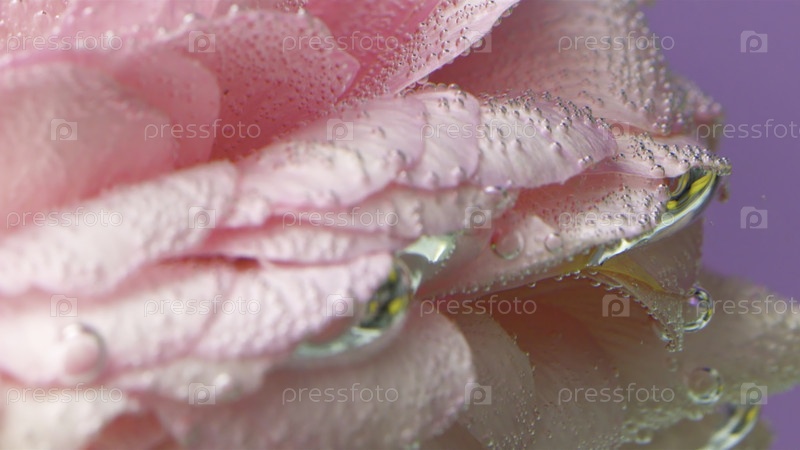 закрывающиеся пузыри на лепестках роз. резервные кадры. нежные розовые листья под водой. однажды в чистой, чистой воде с кислородными пузырями