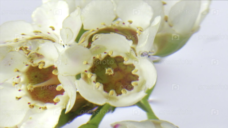 Красивые белые цветы в чистой воде. резервные кадры. Нежные белые цветки под водой на изолированном фоне. Цветы в освежающей воде