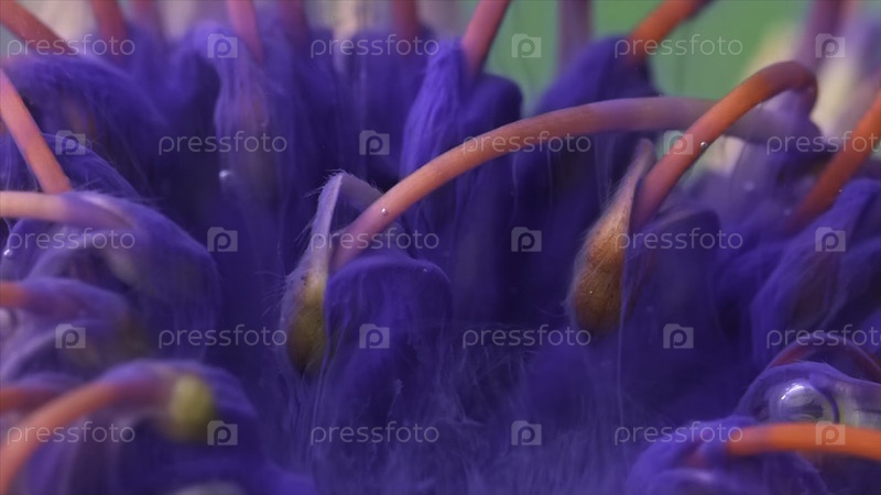 Цветочные штаммы чернила. резервные кадры. Близкий план ярких цветочных штаммов с пузырями и чернилами. Экзотический цветок со штаммами и чернилом под водой на изолированном фоне