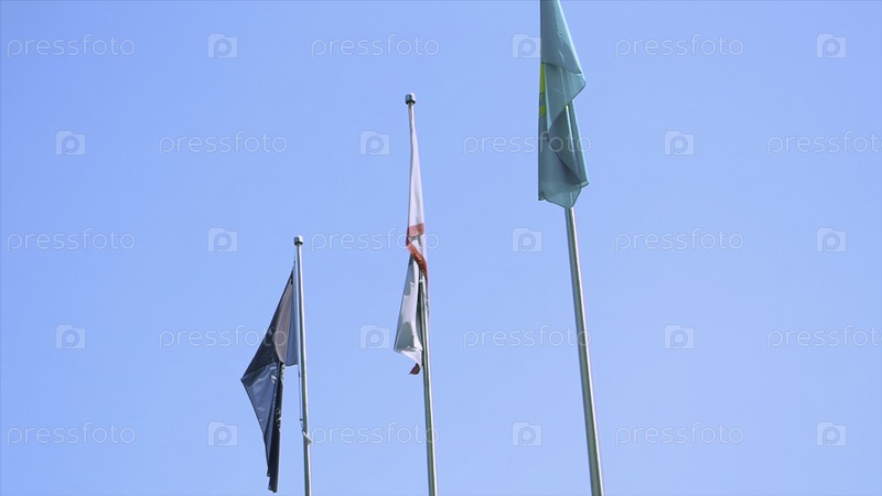 Цветные флаги разных стран против неба.Сток.Флаги европейских стран на площади