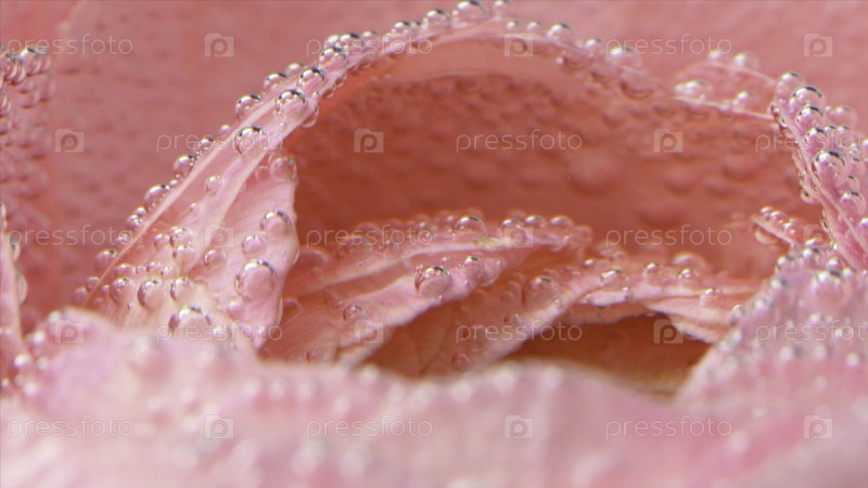 Закрывающиеся пузыри на лепестках роз. Резервные кадры. Красивые пузыри на розовой розу в чистой воде. Роза под водой с кислородными пузырями