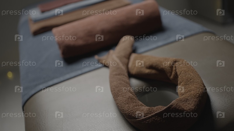 Закройте место с помощью массажных полотен. Продолжайте. Полотенца на масажном столе перед процедурой. Подготовка места для массажа со сложенными полотенцами