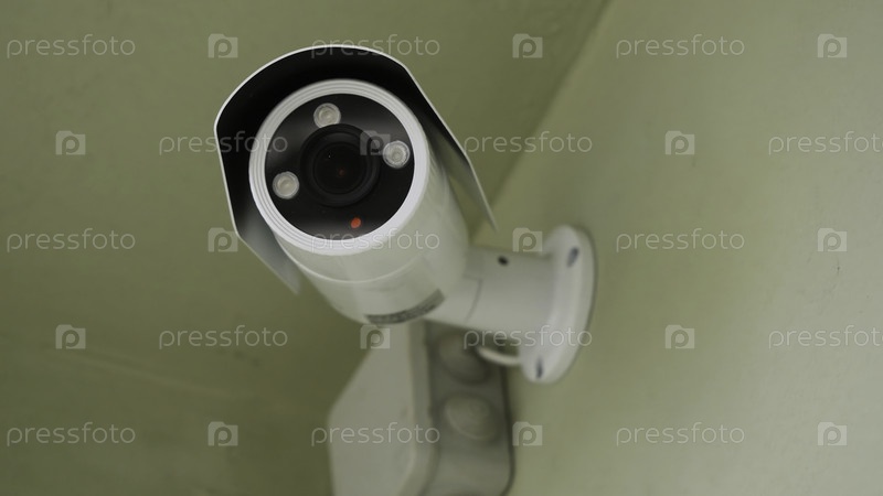 Камера видеонаблюдения установлена на стене для обеспечения безопасности собственности, внутренней безопасности