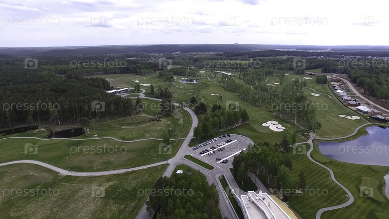 Вид сверху - зеленое поле для гольфа на открытом поле из зелёной травы