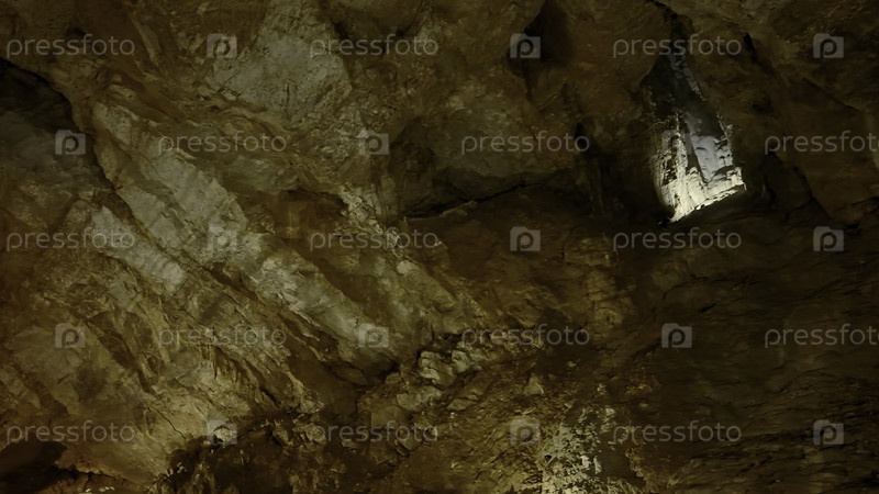 Вид внутрь подземной пещеры, концепция приключений и спелеологии