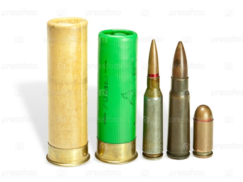 Разнообразные патроны на белом фоне