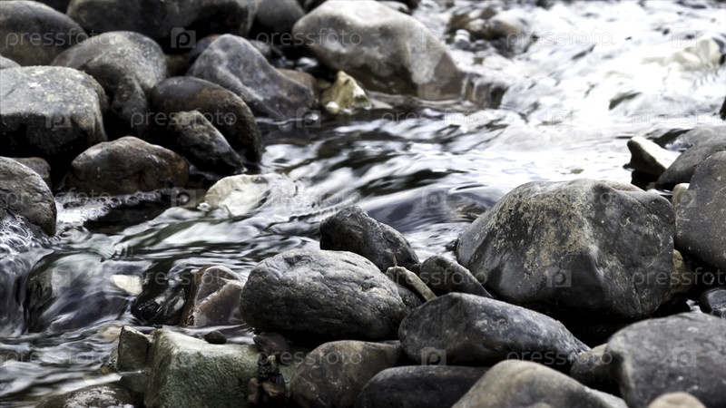 Прозрачная холодная вода течет вниз через живописные мокрые скалы