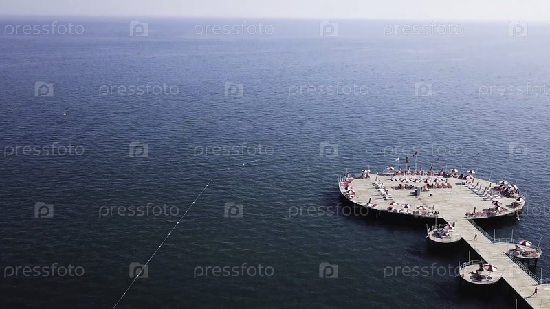 Вид с воздуха на пристань роскошного отеля, голубой морской фон. видео. вид из воздуха на водную виллу на острове Мальдивы, Красивый тропический курортный отель Мальдивы. вид на дома на пальмовом пляже, бассейн и лодка возле деревянной пристани. aer
