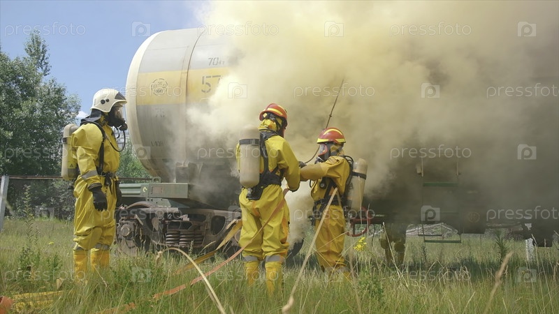 Пожарные и горящий поезд.Клип.Пожарные готовятся с оборудованием для тушения пожара.Подготовка к тушению вагонов промышленных поездов