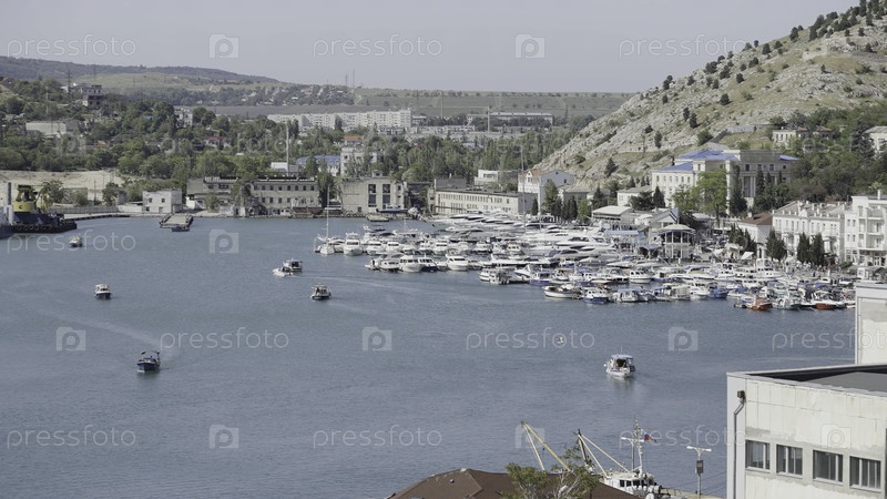 Вид с воздуха на роскошный порт в летний день со многими яхтами