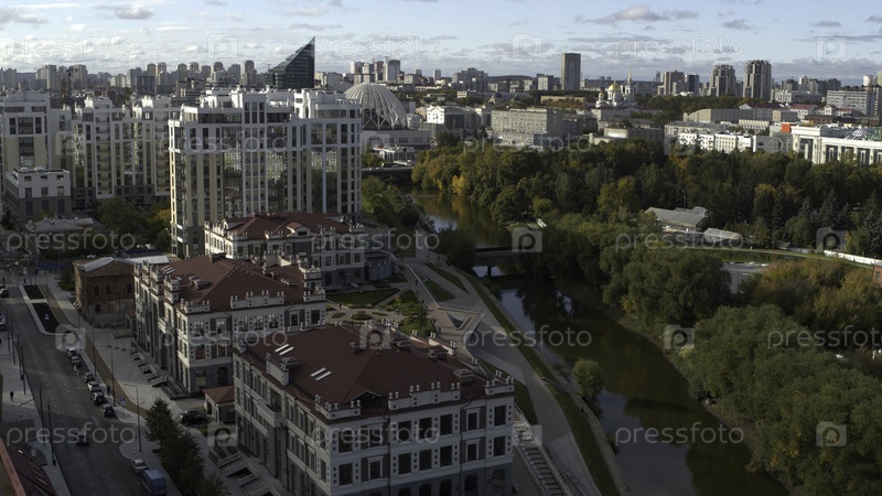 Белград, Сербия - 7 мая 2022 года: высотные коммерческие и жилые здания в центральном районе Екатеринбурга. резервная запись. Строительство домов, панорамный вид на центр города