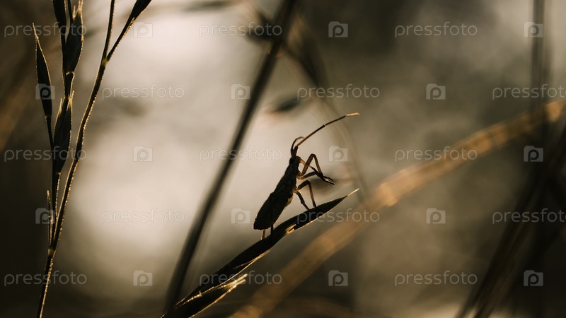 жук в траве. творческий. жук на сухой траве в макрофотографии ползает по стволу пряной травы