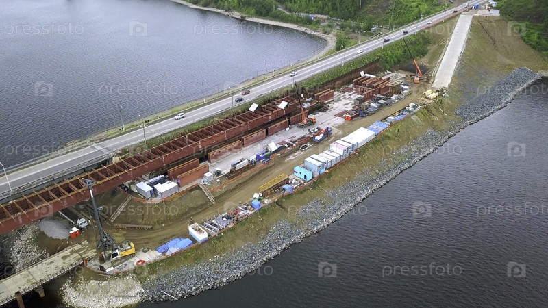 Вид городского пейзажа над рекой. Клип. Красивый городской ландшафт с автомобилями, рекой и фабриками. Высококачественная запись 4k