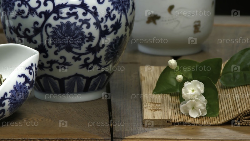 Закрытый стол для чайной церемонии, посуда и аксессуары