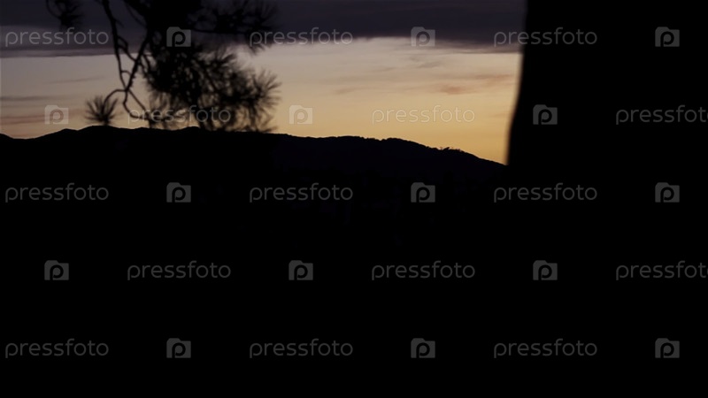 Горный хребет устанавливает горизонт темных облаков пейзаж. стрельба. панорама заката солнца горного горизонта. драматический вид на закате в горное небо. яркий и красочный фиолетовый закат с горным силуэтом