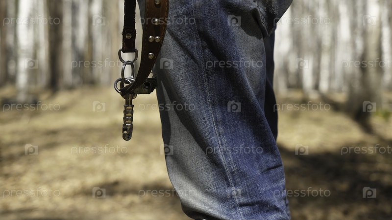 Мужчина стоит на поводке, мужчина ждет собаку с поводком