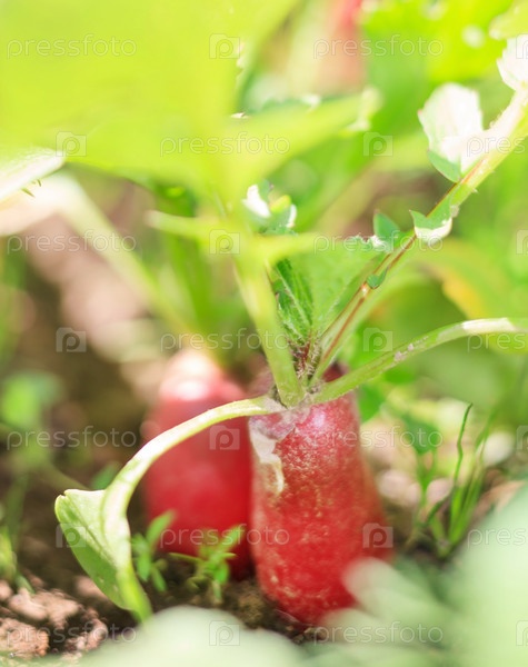 Красный редис на грядке