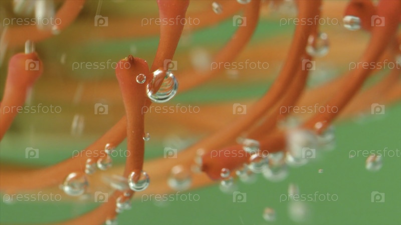 Ближайший план красивого цветка с пузырями под водой. резервные кадры. яркий цветок со штаммами под водой. экзотический цветок с пузырями под водой на изолированном фоне
