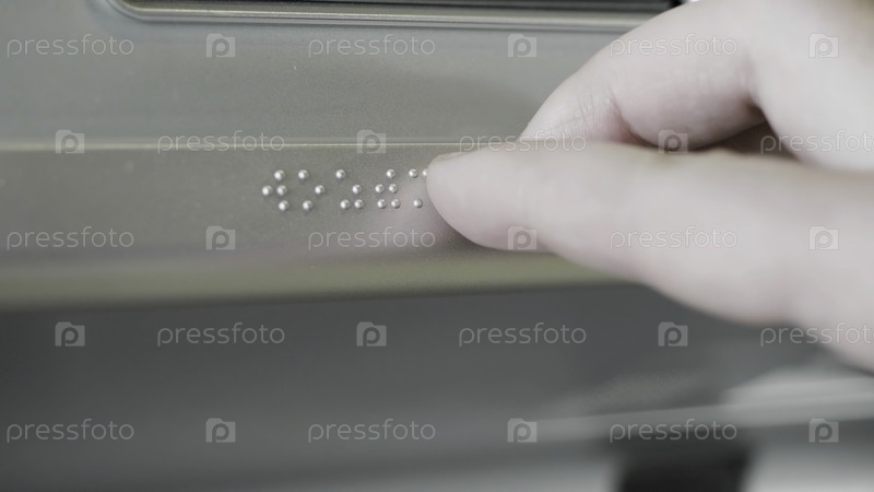 Закройте руку человека, касающегося Брайля на металлическом знаке. HDR. Человек с нарушениями зрения или слепой использует свою руку для чтения информации на металлическом знаке